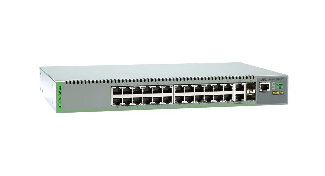 Allied Telesis AT-FS970M/24C-20 FS970M Series 24 x Ports 10/100Base-TX + 2 x Ports SFP Combo Layer 3 Managed Fast Ethernet Network Switch