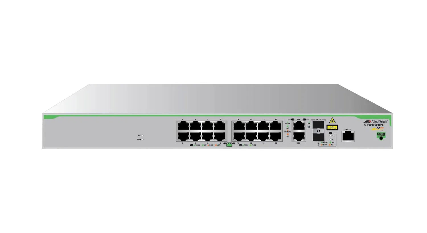 Allied Telesis AT-FS980M/18PS-40 CentreCOM FS980M Series 16 x Ports 10/100Base-TX PoE+ + 2 x Ports SFP Combo (uplink) Rack-mountable Layer 3 Managed Fast Ethernet Network Switch