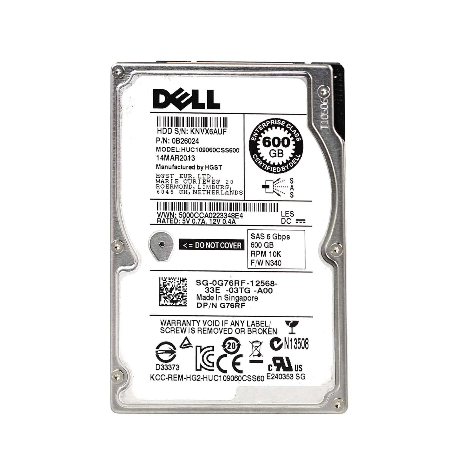 Dell 0G76RF 600GB 10000RPM SAS 2.5-Inch Hard Drive Dell Part Number: 0G76RF
