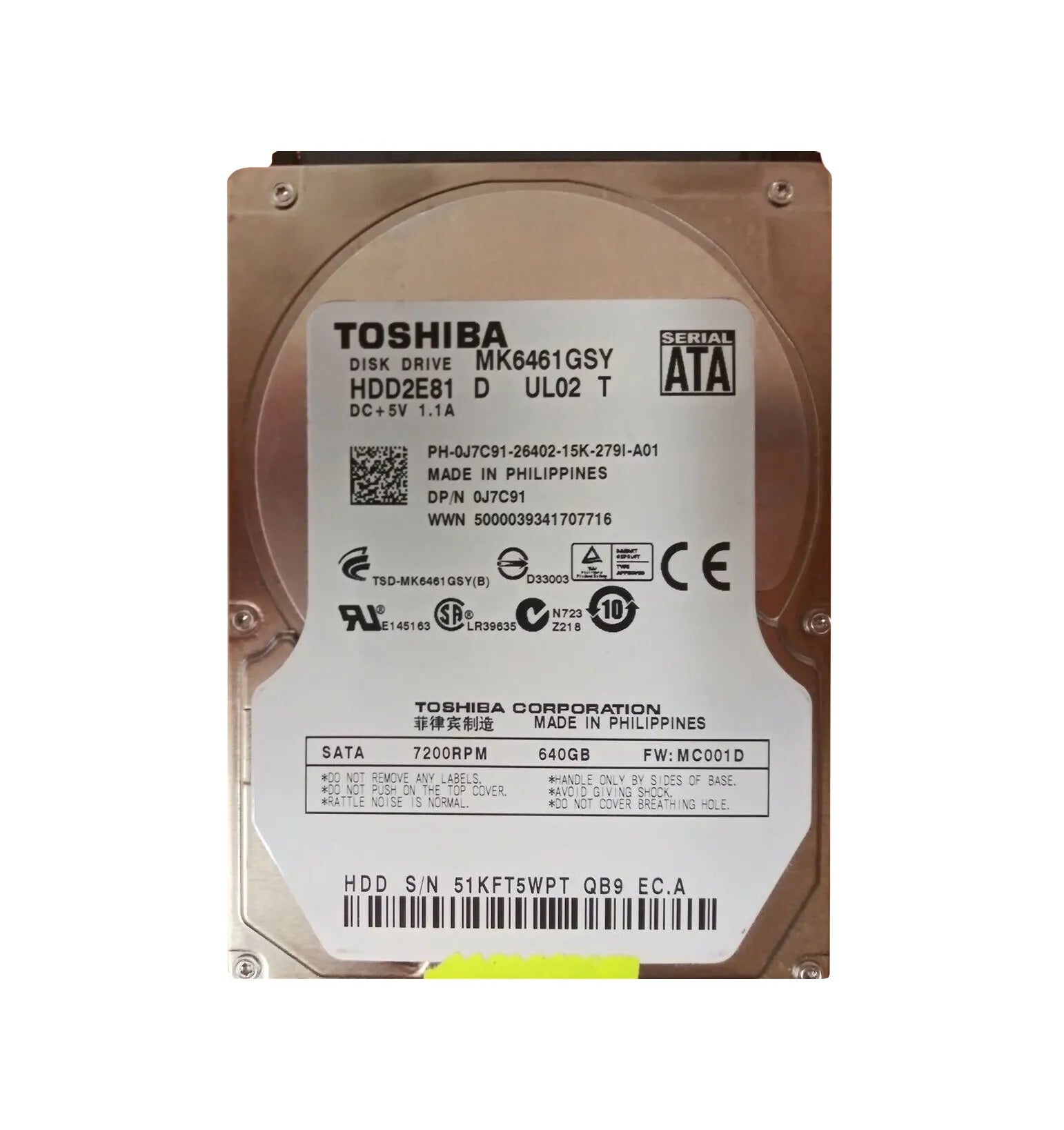 Dell 0J7C91 640GB 7200RPM SATA 3Gb/S 16MB Cache 2.5-Inch Hard Drive For XPS 15 L501X Notebook Dell Part Number: 0J7C91