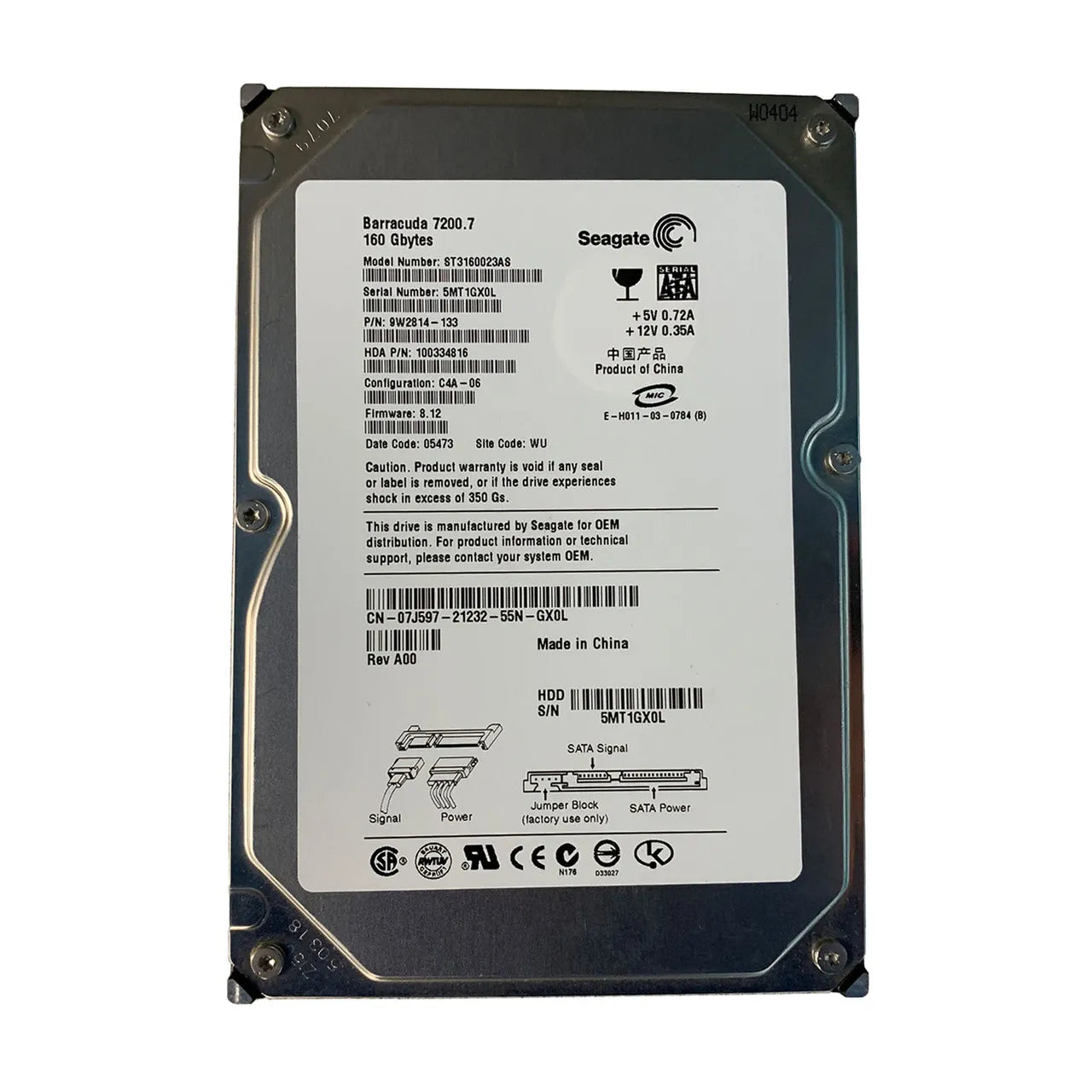 Dell 7J597 160GB 7200RPM SATA 1.5Gb/S 8MB Cache 3.5-Inch Hard Drive Dell Part Number: 7J597