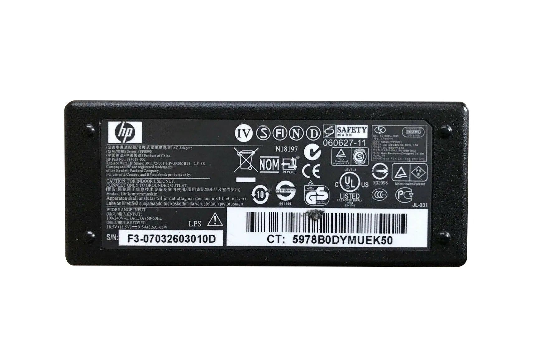 HP 384019-002 65-Watts 100-240V AC Power Adapter For Presario CQ35-200 Notebook PC Series HP Part Number: 384019-002