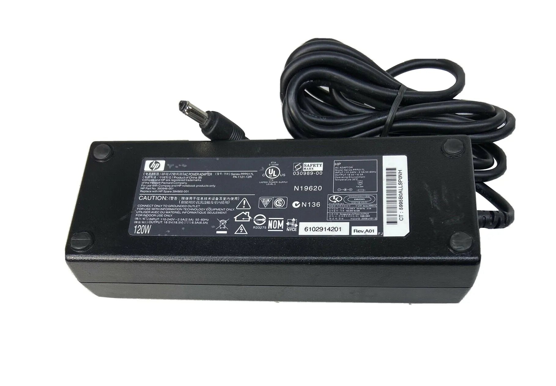HP 393946-001 120-Watts 100-240V AC 7.1A 50-60Hz Power Adapter For Pavilion ZD7000 / Presario 3000 HP Part Number: 393946-001