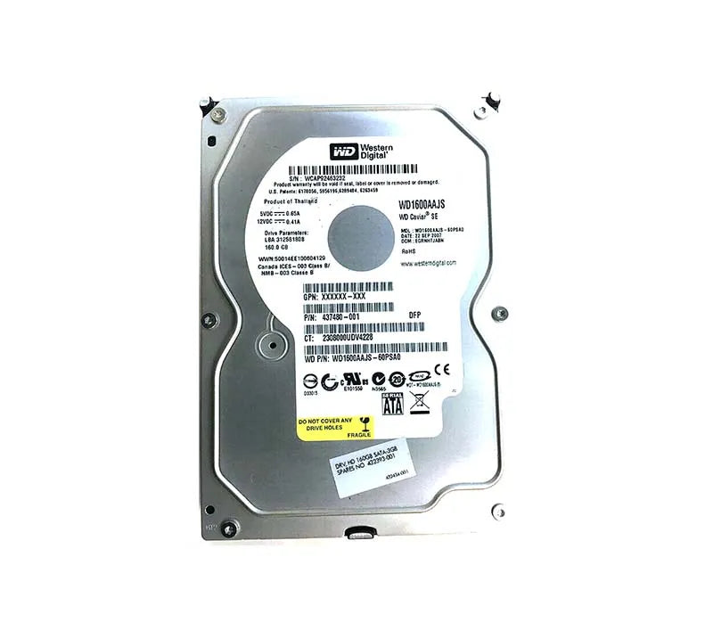 HP 437480-001 160GB 7200RPM SATA 3Gb/s 8MB Cache 3.5-inch Hard Drive HP Part Number: 437480-001