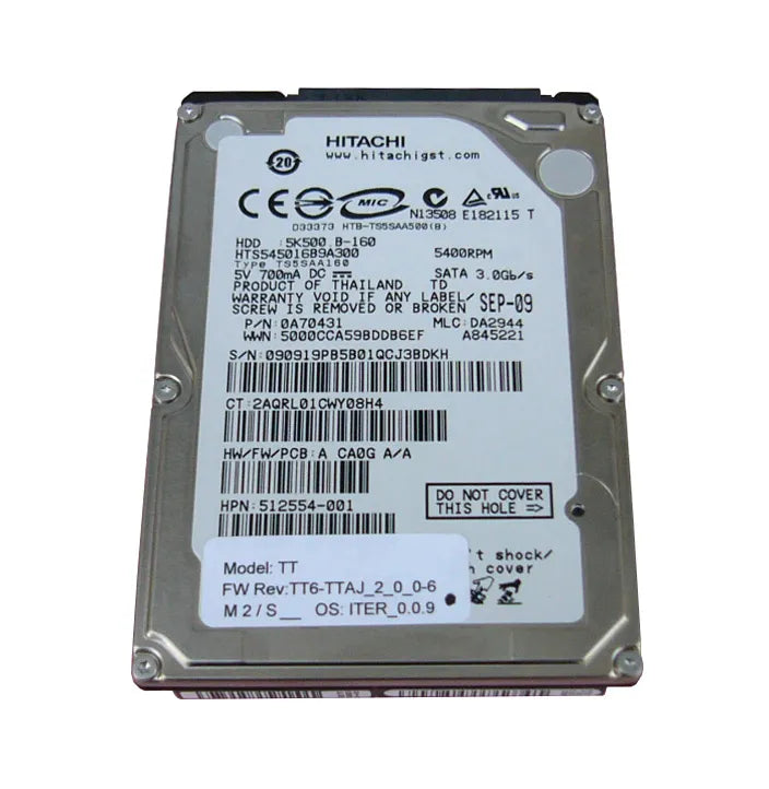 HP 512554-001 160GB 5400RPM SATA 3Gb/S 8MB Cache 2.5-Inch Hard Drive HP Part Number: 512554-001
