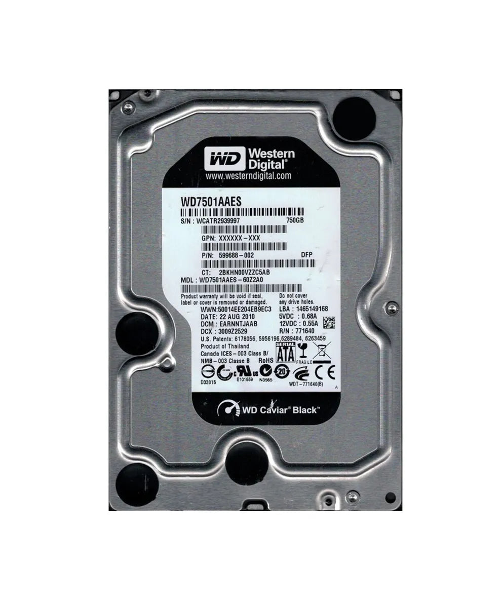 HP 599688-002 750GB 7200RPM SATA 3Gb/S 32MB Cache 3.5-Inch Hard Drive HP Part Number: 599688-002