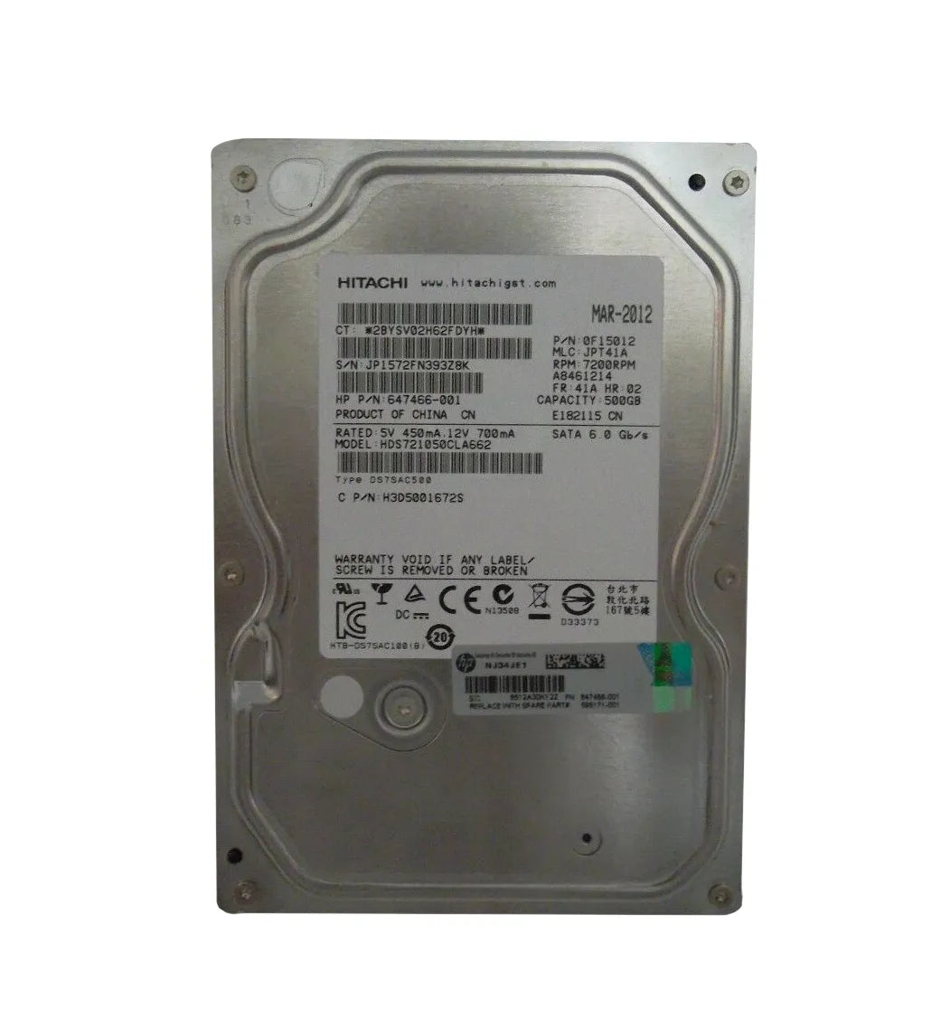 HP 647466-001 500GB 7200RPM SATA 6Gb/S NHP 3.5-Inch Hard Drive For Xw8200 Workstation HP Part Number: 647466-001
