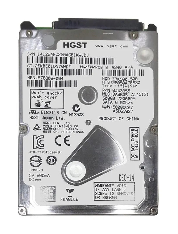 HP 678309-004 500GB 7200RPM SATA 6Gb/S 32MB Cache 2.5-Inch Hard Drive HP Part Number: 678309-004