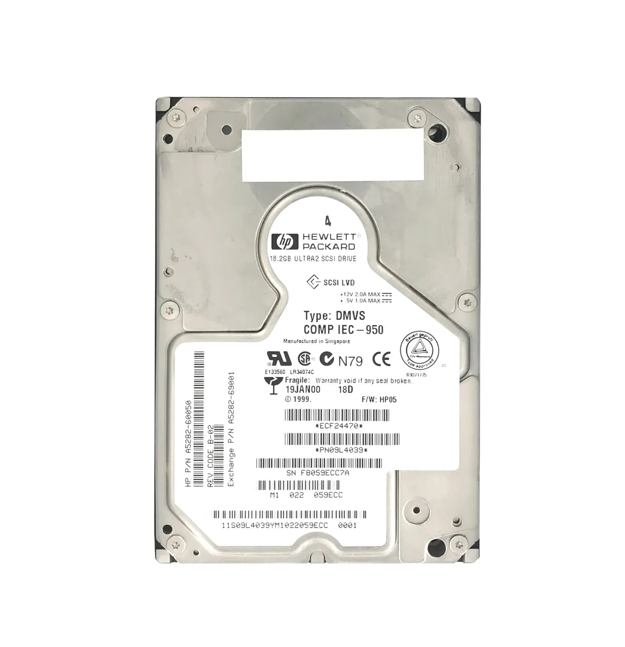 HP A5282-69001 18.2GB 10000RPM Wide Ultra2 SCSI Hot Swappable LVD 80-Pin 3.5-Inch Hard Drive HP Part Number: A5282-69001