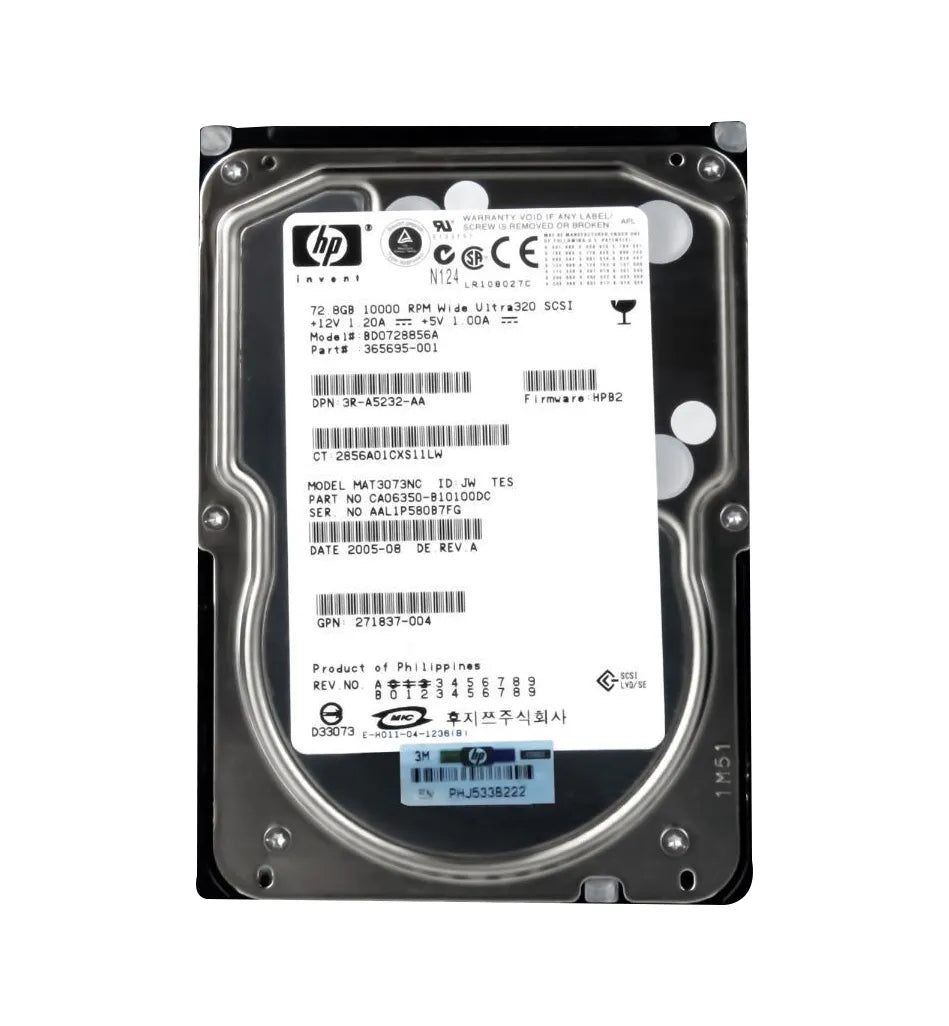 HP BD0728856A 72.8GB 10000RPM Ultra320 SCSI Hot Swappable LVD 80-Pin 3.5-Inch Hard Drive HP Part Number: BD0728856A