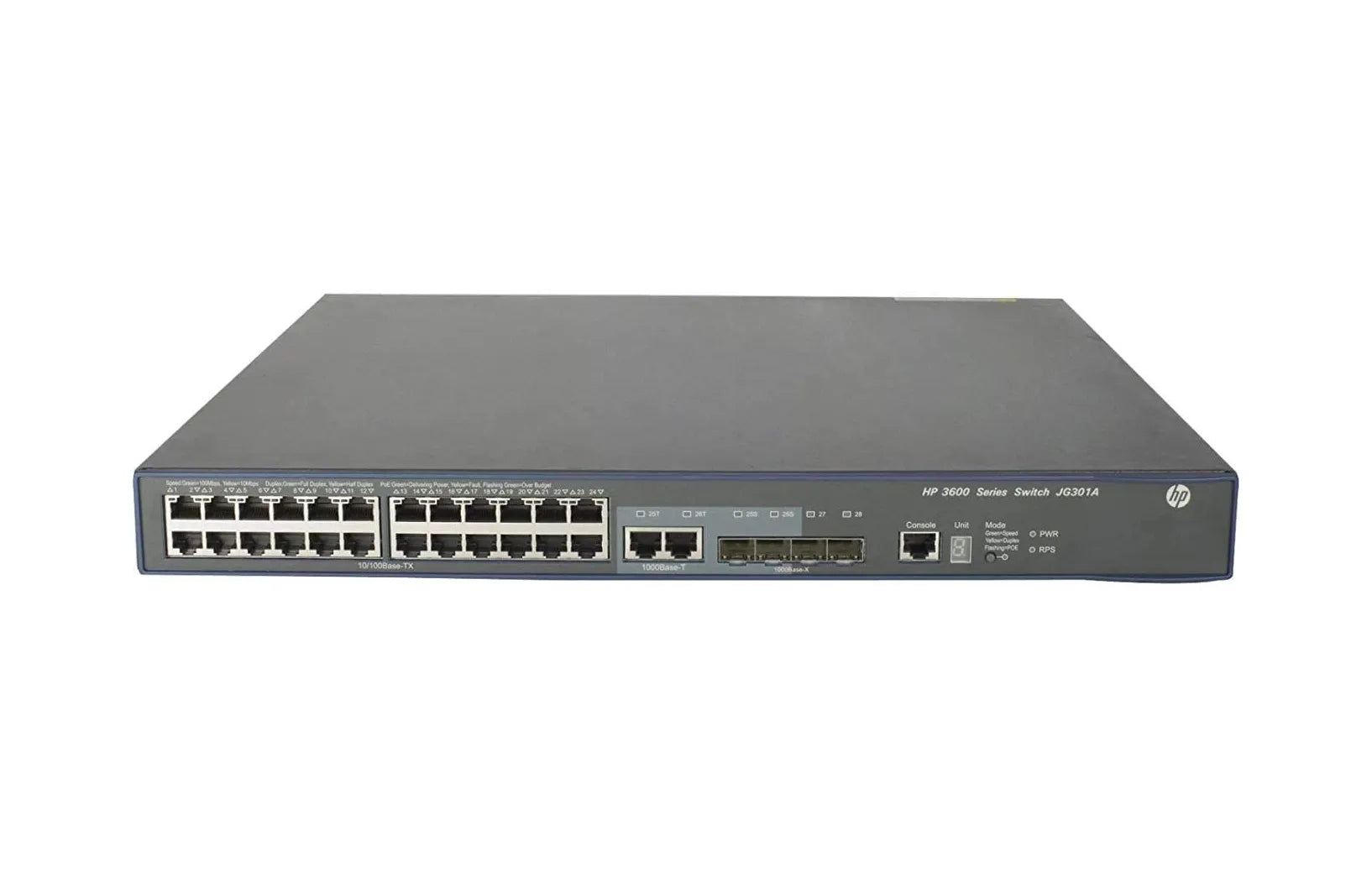 HP JG301-61401 FlexNetwork 3600 EI Series 3600-24-PoE+ 24 x Ports PoE+ 100Base-TX + 2 x GBE Ports + 4 x Ports SFP (mini GBIC) Layer 3 Managed Gigabit Ethernet Network Switch