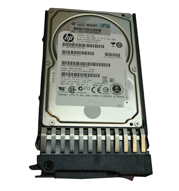 HPE 599476-002 450GB 10000RPM SAS 6Gb/S Hot-Pluggable Dual Port SFF 2.5-Inch Enterprise Hard Drive With Tray For Gen1/7 ProLiant Server/Storage Array HPE Part Number: 599476-002